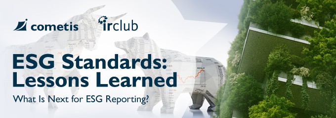 Das Jahr 2021 entwickelt sich zum bisher größten Jahr für ESG-Themen. In unserem cometis / IR Club-Webinar haben wir die neuesten Entwicklungen in der sich schnell verändernden Welt des ESG-Reportings diskutiert. Wertvolle Einblicke und Perspektiven konnten die hochkarätigen Referenten von SASB, DPDHL und AGI bieten.